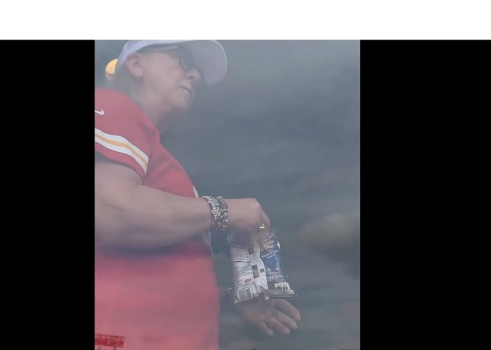 Kelce’s look included custom details just for the NFL star — including his no. 87 stitched into his shirt cuff. Donna was recorded having a snack while trying to locate her seat.