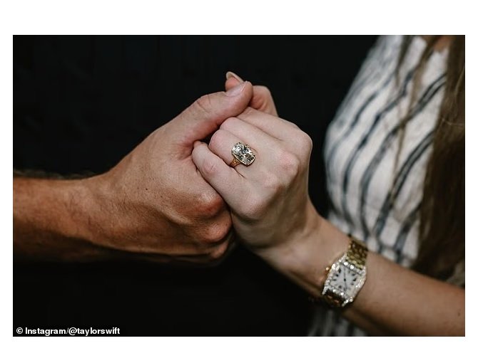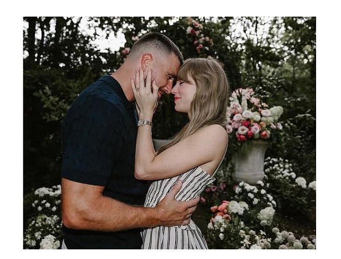 The pop icon and the NFL star, both 35, announced their bombshell marriage news with a romantic photoshoot showing Kelce proposing in a rose garden, which Swift captioned: ‘Your English teacher and your gym teacher are getting married.’ Swift also revealed her mammoth diamond engagement ring in the post.